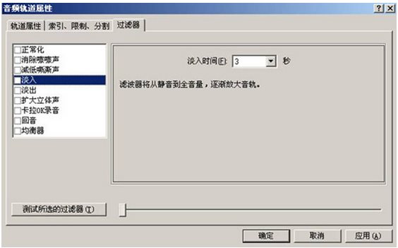 “過濾器”界面中可以對所選定的音樂加入一些音頻特效。