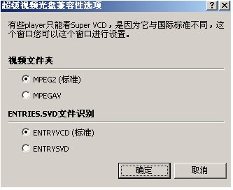 也就是平時所說的超級VCD,它的視頻質(zhì)量要優(yōu)于VCD,分辨率為480*576,