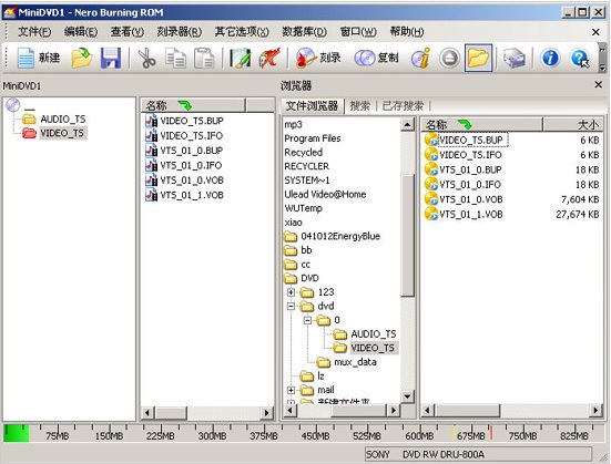 NERO還是不能直接支持MPEG2文件,只能把它支持的文件如BUP、IFO、VOB等文件拖到DVD視頻文件夾VIDEO_TS里,如上圖所示,如圖生成DVD文件夾及BUP、IFO、VOB等文件可參考:http://it.com.cn/f/dv/0510/24/189796.htm