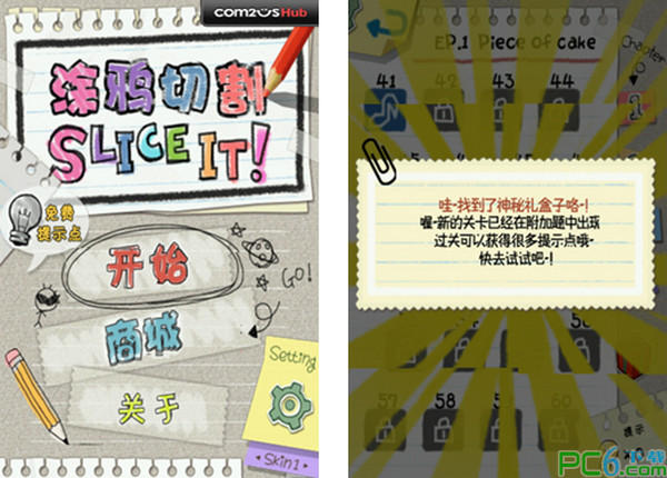 不知道該怎麼切割?一點(diǎn)頭緒沒有?不用急!使用提示點(diǎn)就可以得到實(shí)用的提示哦~!在百般無奈時(shí)~提示會(huì)為你指點(diǎn)迷津!注意:提示只有你完美切割圖形時(shí),才可以獲得哦~要善待提示哦~!