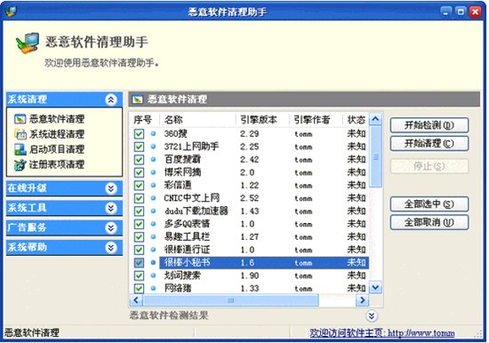 現在網上的流氓軟件越來越多,前些日子網絡行業(yè)協(xié)會點名了十大流氓軟件,這些軟件的特點大多時強制安裝,而且不容易卸載.本軟件即是針對這種情況編寫的,軟件目前可以清理下列流氓軟件: