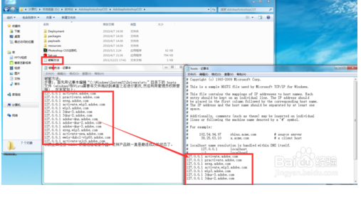 2、打開“破解方法”文件中獲取部分放到hots文件末尾,保存即可(理由是防止連接Adobe 的激活驗(yàn)證服務(wù)器);