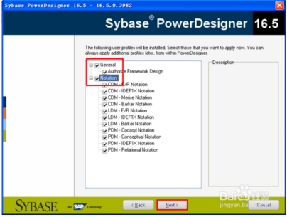 7、根據(jù)自己需要勾選General和Notation中的選項;然后鼠標(biāo)單擊Next按鈕;