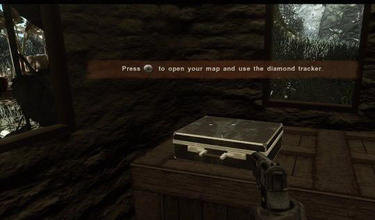 來(lái)到小屋,中尉指出有個(gè)糊涂蛋丟掉了許多放有鉆石的箱子,他猜測(cè)這些箱子很有可能在各個(gè)角落,例如營(yíng)地、市中心等等。你盡可能的找出這些箱子,因?yàn)槟銜?huì)需要它的。另外還有關(guān)于你得到瘧疾這事,如果我是你,我會(huì)去城市買(mǎi)點(diǎn)藥來(lái)吃。出了門(mén)后,便可以使用GPS上的燈號(hào)尋找鉆石箱只要愈接近鉆石箱,GPS上的雷達(dá)燈號(hào)就會(huì)閃的愈快,直到燈完全恒亮即是離鉆石最接近。鉆石箱的位于與中尉見(jiàn)面的房子出門(mén)后左手邊的小車庫(kù)里。