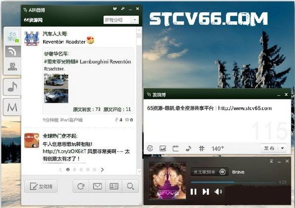 微博air是基于Adobe AIR平臺(tái)的新浪微博客戶端,支持在Windows、MAC、Linux下運(yùn)行。通過(guò)微博air不用打開新浪微博網(wǎng)頁(yè)就可以直接登錄微博,新浪微博官網(wǎng)能夠?qū)崿F(xiàn)的功能它都能完成,收聽、發(fā)送微博就像聊QQ一樣簡(jiǎn)單,不干擾你的工作、娛樂(lè),新浪微博控必裝應(yīng)用!