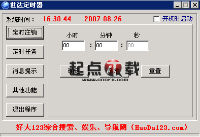 世達(dá)定時器是一款小巧的定時自動操作工具。它能定時執(zhí)行程序,注銷系統(tǒng)。還能設(shè)置定時提示,在您需要的時候提醒您,防止您忘記重要的事情。新版增加倒計(jì)時和計(jì)時器功能^_^