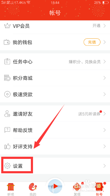【賬號(hào)】的頁(yè)面,點(diǎn)擊“設(shè)置”這一項(xiàng)。