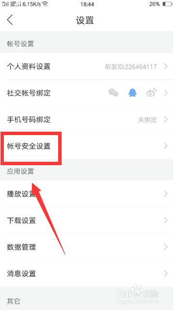 【設(shè)置】的頁(yè)面,點(diǎn)擊“賬號(hào)安全設(shè)置”這一項(xiàng)。