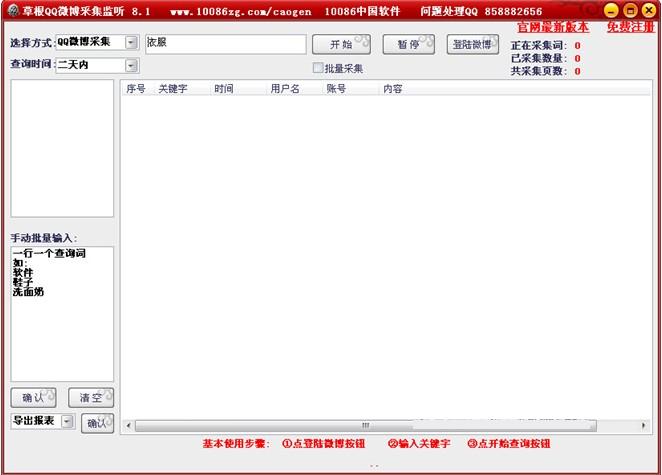 本軟件使用特殊的搜索功能,能夠以極快的速度抓取騰訊微博上發(fā)布的和關鍵詞有關的內容! 方便信息快速精準投放!