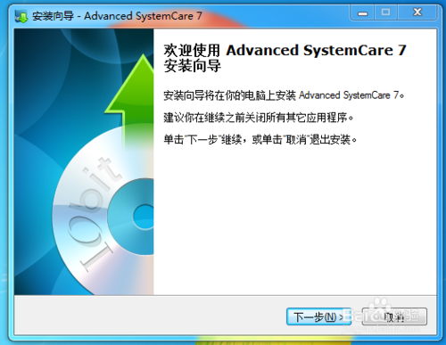 首先,可以在本站下載Advanced systemcare 7。下載完畢之后,我們直接點擊“下一步”。