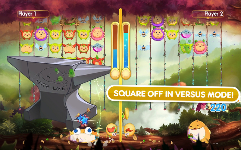 同時(shí)游戲還設(shè)計(jì)了較為豐富的加分系統(tǒng),例如如果蟲(chóng)子以最大、中的順序從上向下排好之后,如果這時(shí)喂給最下面的中蟲(chóng)子一個(gè)小蟲(chóng)子,就可以得到翻了好幾倍的分?jǐn)?shù)。你也可以通過(guò)將一個(gè)類(lèi)型的蟲(chóng)子排在一起,然后喂飽最下面的一個(gè),來(lái)個(gè)連鎖爆,也可以將積分翻番。