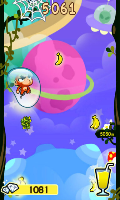 其實(shí)只要利用好游戲中蹦床的彈性以及游戲中功能各異的道具,想要獲取高分并不難,此外游戲中還有商店。在商店里面我們可以購買到能量飲料、萬達(dá)斯之手等道具。本作的道具相當(dāng)豐富,首先有空中分布的香蕉、寶石,悟空一路向上竄的同時(shí)也要收集這些物品。輔助類道具有氣球、神燈、泡泡等等,種類豐富,可以幫助悟空維持各種上升狀態(tài),收集到更多道具。當(dāng)然了,攔路的家伙也不能少,比如碰到蜘蛛網(wǎng)或者大鐵球什么的。畫面右邊有個(gè)杯子,吃到的香蕉會(huì)變成果汁匯集在杯子里,杯子滿了之后點(diǎn)擊一下,悟空就可以向上沖刺一段距離。注意:不要吃到綠色的爛香蕉哦。