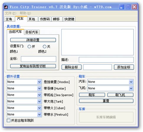 俠盜飛車罪惡都市萬(wàn)能修改器 0.7 漢化版 俠盜飛車罪惡都市萬(wàn)能修改器是一款多功能俠盜飛車罪惡都市修改器,該軟件完全免費(fèi),可以修改主角屬性,武器屬性,汽車屬性,警察屬性,F(xiàn)BI屬性等等各類游戲數(shù)據(jù)。俠盜飛車罪惡都市修改器是功能強(qiáng)大的罪惡都市作弊器。