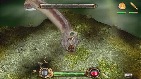 只要把山路上的敵人全滅就可以開啟下一道門(究竟是只要把巨人干掉就能開門,還是敵全滅就能開門,這點沒有考證……不過不管怎樣,全滅敵人是最好的選擇)。門的那邊就是加血點。路上的敵人完全不需要理會,只要一直前進就行了。這時會發(fā)生過場事件,然后主角來到湖底。這里的地型和之前去過的那個是一樣的,而且也是沒有,一路前進就會進入BOSS戰(zhàn)。