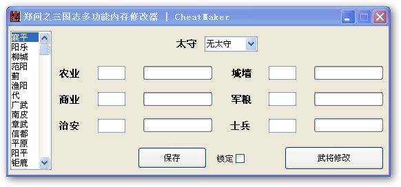 鄭問之三國志全能版修改器是一款功能強大的鄭問之三國志修改器,能幫助用戶對農(nóng)業(yè),城墻,商業(yè),軍糧,治安,士兵數(shù)等游戲數(shù)據(jù)進行修改。