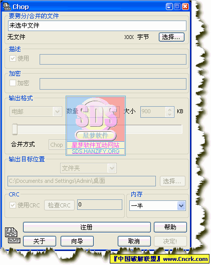 ] Chop [劈分]用于分割大文件便利分發(fā).(假如您是密探,您可以將文件分割甚至出于安全原因半加密它).使用普通窗口或向?qū)Ы缑?Chop [劈分]能夠按照您想要的文件數(shù)量,最大文件大小分割文件,您也可以使用預設的用于電子郵件,軟盤,Zip盤,CD等的通用大小分割文件.Chop [劈分]能以向?qū)Щ蚱胀ń缑媾趾秃喜⑽募?并支持保留文件時間和屬性,CRC,命令行操作甚至簡單加密.此外,如果大小是絕對優(yōu)先的并且您不需要任何Chop [劈分]的更多高級特性,您可以轉(zhuǎn)而設置Chop [劈分]創(chuàng)建一個非常小的BAT文件,它無需Chop [劈分]就能重建文件.