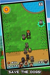 狗狗大逃亡一款成功從ios平臺(tái)移植而來(lái)的跑酷類(lèi)休閑游戲,玩家需要控制著黃金獵犬Steve,在小鎮(zhèn)內(nèi)一邊避開(kāi)警長(zhǎng)的抓捕,一邊把小鎮(zhèn)里其他的狗狗們救走,脫離被抓住的厄運(yùn)。游戲中,玩家需要不斷收集金幣、獲取食物并躲避障礙物。