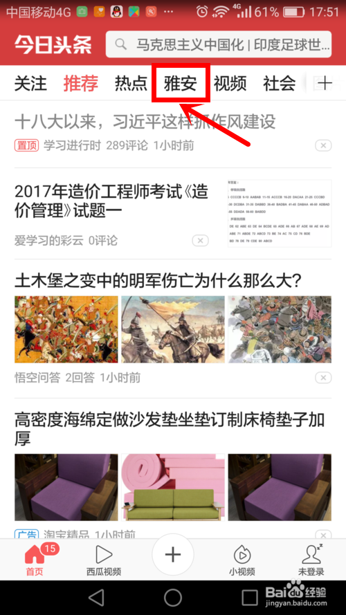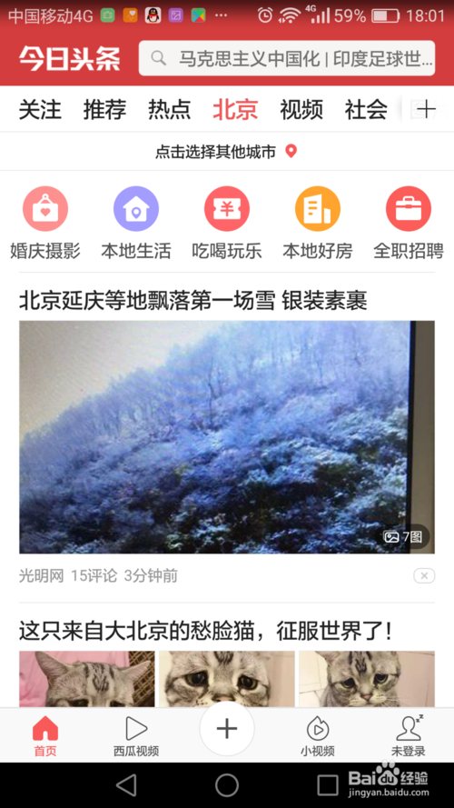今日頭條APP怎樣切換城市?進入今日頭條APP軟件,最上方左起第四列就是城市新聞,點擊進入。