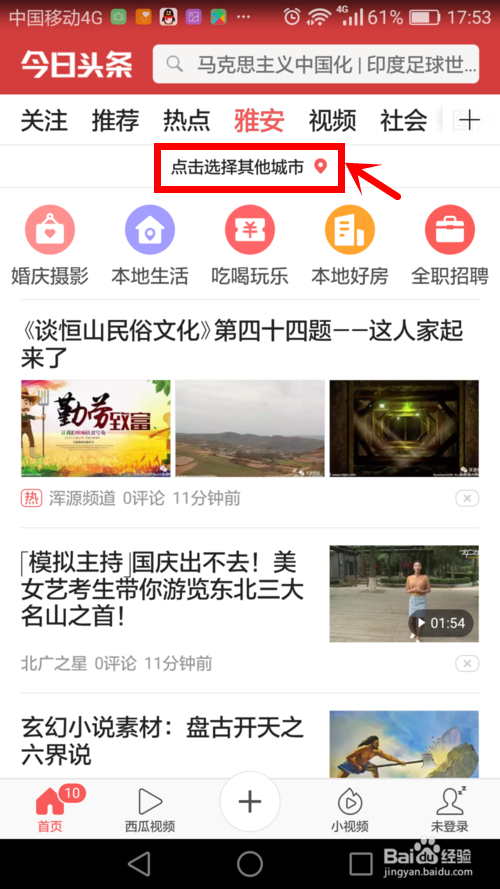進入城市新聞后,上方第二排是“點擊選擇其他城市”,切換城市就是點擊這里。