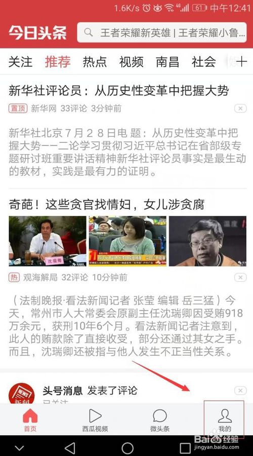 接著來到了頭條的首頁,我們點擊“我的”,如圖。