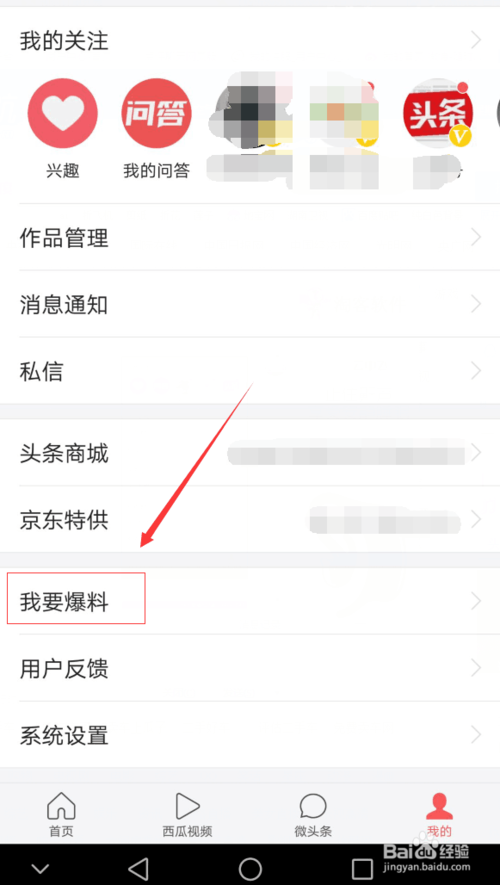 來到了我的界面,在這里我們點擊“我要爆料”,如圖。
