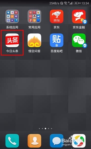 打開我們的手機,接著我們在手機上找到我們按照的今日頭條APP,點擊打開,如圖。