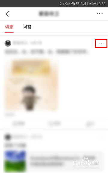 找到以后,點擊該條動態(tài)右上角的三個小點,如下圖所示: