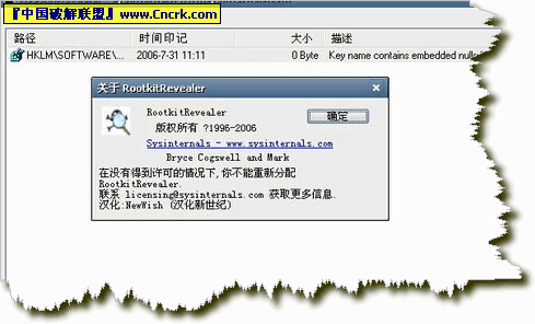 Rootkit Revealer (系統(tǒng)后門檢測) V1.7 綠色漢化版 一個流行的基于行為的 Rootkit 檢查程序,Rootkit 是一種特殊類型的 malware(惡意軟件)。Rootkit 之所以特殊是因為您不知道它們在做什么事情。Rootkit 基本上是無法檢測到的,而且?guī)缀醪豢赡軇h除它們。雖然檢測工具在不斷增多,但是惡意軟件的開發(fā)者也在不斷尋找新的途徑來掩蓋他們的蹤跡。