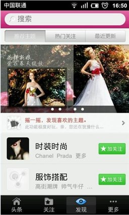 根據(jù)個(gè)性化需要自定義主題,根據(jù)需要隨意搭配關(guān)注的信息。有了關(guān)注的目標(biāo),搜索幫你完成,搜時(shí)尚、美容、瘦身、明星……