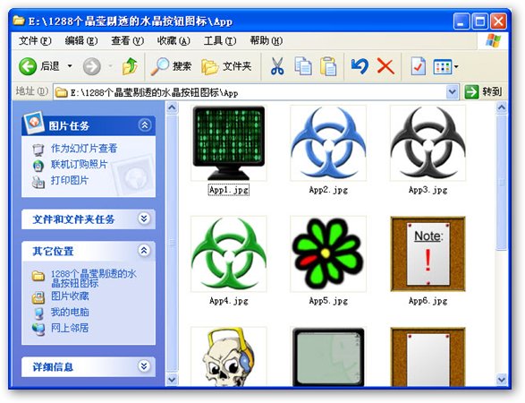 1288個晶瑩剔透的水晶按鈕圖標是web開發(fā)必備按鈕圖標素材,該圖標素材全部都是128X128規(guī)格,Jpg格式,適用于XP系統(tǒng)中替換文件夾縮略圖,也可以適用于網(wǎng)站插圖。