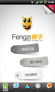 1.全方位解碼:國(guó)內(nèi)最全面的解碼功能,既可以通過(guò)最常用的手機(jī)攝像頭進(jìn)行拍照解碼,又可調(diào)用手機(jī)圖庫(kù)中帶二維碼的圖片進(jìn)行解碼,甚至在用手機(jī)上網(wǎng)時(shí)也可以對(duì)網(wǎng)頁(yè)中的二維碼進(jìn)行解碼。