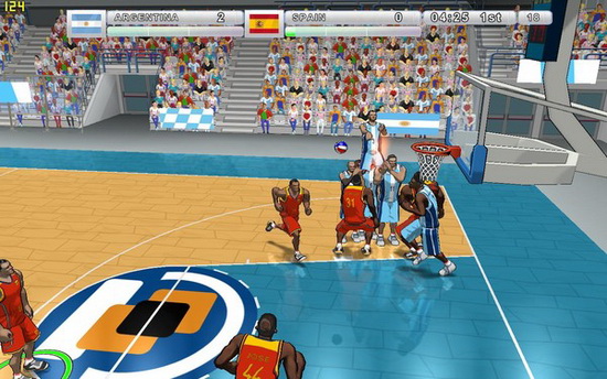 無球的4 名球員疊羅漢,傳球給塔尖的隊友,現(xiàn)在你可以在球場自由跑動,按傳球,球又交回你手上,按投籃,由塔尖隊員完成投籃。