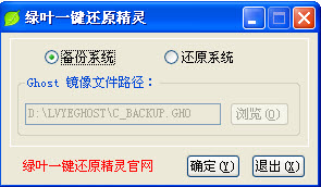 2:打開(kāi)綠葉一鍵還原軟件,如圖所示,點(diǎn)擊“確定”按鈕