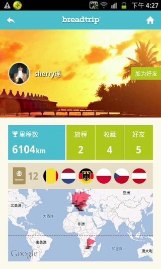 面包旅行安卓客戶端,這個(gè)網(wǎng)站很有文藝范,他們的安卓客戶端也走的holo風(fēng),UI很好看。面包旅行其實(shí)一開始并不叫面包旅行,在產(chǎn)品剛剛推出的時(shí)候,還叫“遨游記”,是一款“記錄旅行足跡,分享旅途精彩”的 LBS 應(yīng)用。后來,創(chuàng)始人希望面包旅行像旅途中的面包一樣,成為旅行的必需品。故將其改為“面包旅行”。【軟件特點(diǎn)】