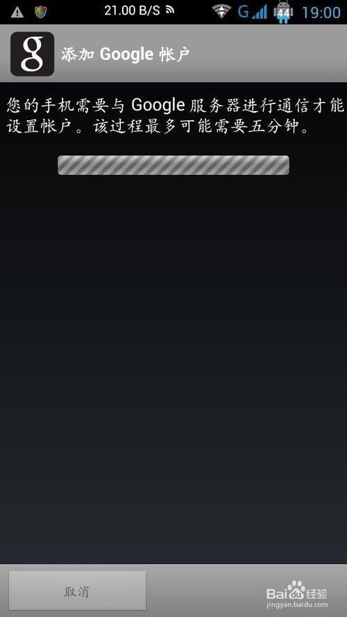 3、您的手機需要與Google服務器進行通信才能設置賬戶。該過程可能最多需要5分鐘。等著這個提示進行安裝即可