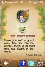 您知道如何創(chuàng)造出狗或者老虎么? 這兩種動物組合在一起還能生成另一種生物哦? 貓+狗=老虎? 或者 鴨子+青魚=企鵝? 企鵝能飛么? 您可以在游戲中找到這些問題的答案,而且僅用四種生物就能創(chuàng)造出整個動物王國哦! 聽起來很酷吧。游戲畫面華麗,您會愛上這個完美的動物世界,戴上您的牛仔帽吧,您扮演的就是動物造物主的角色。每次創(chuàng)造出一個新的動物,您都可以點擊界面右下角的'了解更多'圖標,連上wikipedia閱讀關于這種動物的所有百科知識。這就是神奇的涂鴉農場!
