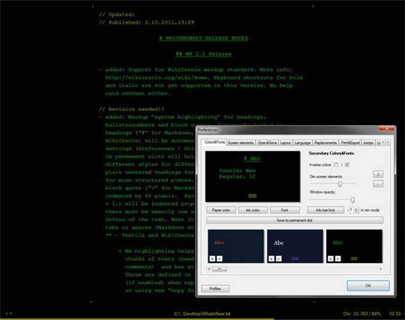 WriteMonkey為一款全屏編輯器,WriteMonkey可以快速編寫,編輯和保存您的筆記。您擁有WriteMonkey就是擁有一臺(tái)打字機(jī)怎么簡單,從而生活就更方便了。隨著WriteMonkey您就可以快速編寫,編輯和保存您的筆記。