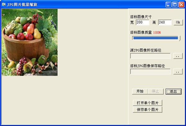 6. 如果只想縮放單個JPG圖片,則先點擊“打開單個圖片”按鈕,再點擊“保存單個圖片”按鈕即可,目標圖片的尺寸及質(zhì)量設(shè)置同上。
