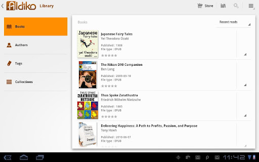 在線書倉Aldiko Book Reader Premium是一款在線電子書制作、轉(zhuǎn)換、存儲、閱讀和分享的安卓平臺,每個(gè)人都可以創(chuàng)建自己的在線書房,因此用的人越多,書也越多。目前公開分享的已經(jīng)有40000多本書、報(bào)紙、雜志,還有許多私藏的,并且在線書倉這個(gè)平臺提供了轉(zhuǎn)換功能,只要上傳txt、umd、chm(比較標(biāo)準(zhǔn)的那種),就能自動(dòng)被轉(zhuǎn)換成包括epub在內(nèi)的多種格式,對了,你有kindle么?也支持哦。還支持在線的中文書庫。