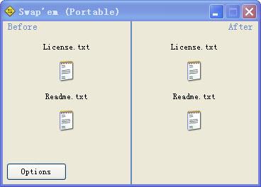 文件名互換(Swap’em) V1.9.8.17 官方綠色版 文件名互換(Swap’em),功能很簡(jiǎn)單,將兩個(gè)文件名一鍵互換的工具,還支持右鍵操作哦!