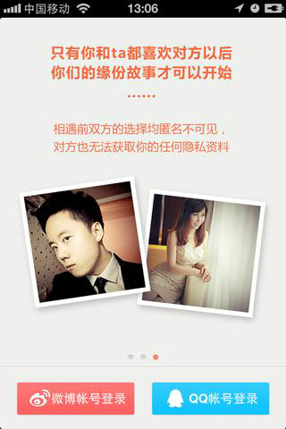 產(chǎn)品基于’屬相‘、’星座‘、’同鄉(xiāng)‘、’同行‘、’邂逅‘等系統(tǒng)服務(wù)的異性匹配,借助雙方視頻、音頻、文字的互動(dòng)體驗(yàn),了解對(duì)方的相貌、談吐、氣質(zhì)、工作等信息,把握機(jī)緣,構(gòu)筑幸福。所有的互動(dòng)都可獲贈(zèng)系統(tǒng)獎(jiǎng)勵(lì)------虛擬瑞米粒,登錄’兌獎(jiǎng)中心‘,即可兌現(xiàn)喜愛的獎(jiǎng)品。