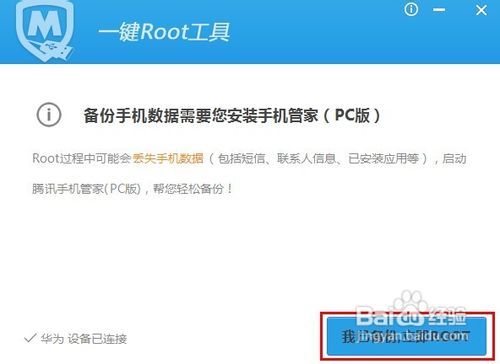 7、備份完成后,直接點(diǎn)擊“我已備份,直接Root”按鈕。