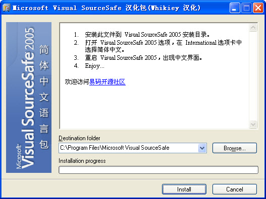 安裝時需先安裝完整的VSS2005 后默認安裝就成功就為中文版的了。