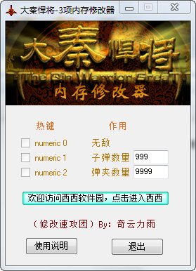 大秦悍將3項內(nèi)存修改器功能: