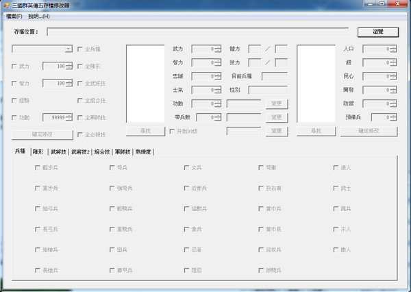 三國群英傳5存檔修改器是一款功能強大的《三國群英傳5》內存修改工具,可以修改的內容非常之多,例如屬性、武將等等。三國群英傳5修改器是目前最完美屬性內存修改器包括了最全面的修改武將、更改頭象、修改城市、修改國庫物品等功能.