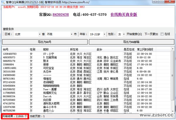 模式1:支持按照省市、性別、年齡區(qū)域搜索采集QQ,