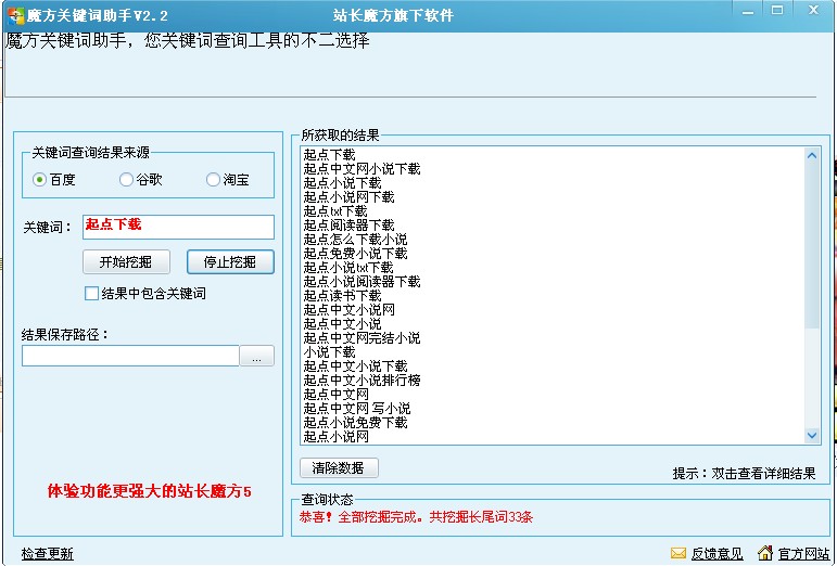 魔方關(guān)鍵詞助手是站長魔方旗下一款百度,谷歌,淘寶長尾關(guān)鍵詞查詢軟件!