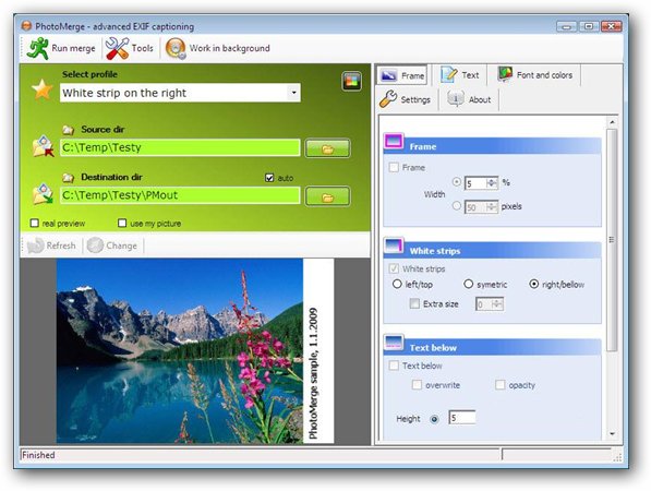 批量添加圖片說明框(PhotoMerg)可批次為圖片加入說明框的免費工具,除了可以自動加入 EXIF 中的資訊外,亦可加入自己的說明文字,簡單好用,免安裝。