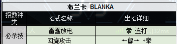 這個人物十分靈活,如果想要玩好布蘭卡那么一定要勤加練習(xí);詳情參考下圖