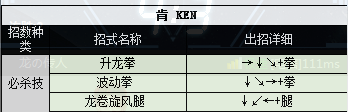 作為2號主角和隆的出招方式類似,并且也深受玩家們的喜愛;詳情參考下圖